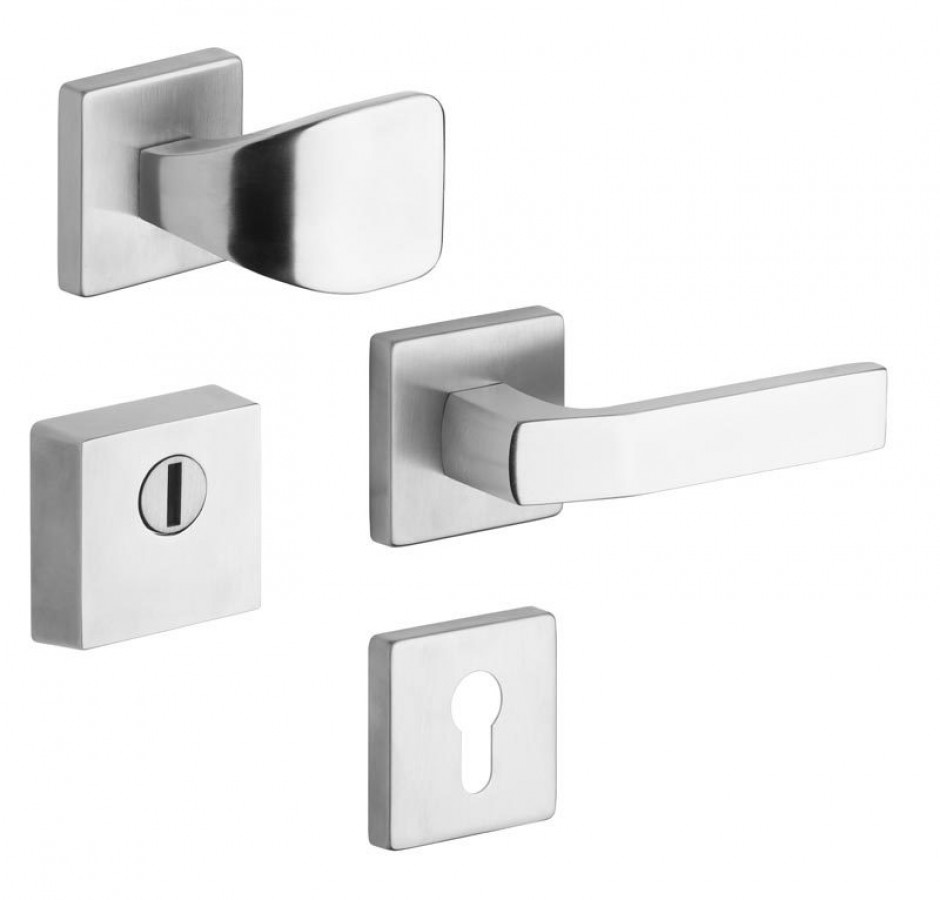 Bezpečnostní rozetové kování je určeno na vstupní dveře s překrytem vložky. Povrchová úprava nerez mat. Určeno na vstupní dveře otevírané dovnitř i ven, tloušťka dveří 40 - 45 mm, dále po 5 mm až do tloušťky dveří 100 mm.